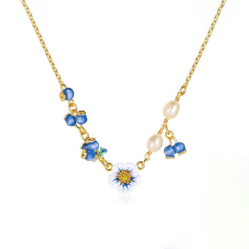 Blueberry Flower Zircon Enamel Chain Tassel Necklace