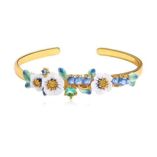 Purple Flower Irises de Luce And Gem Enamel Adjustable Bangle Bracelet