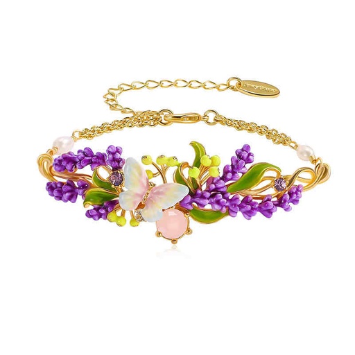 Lavender Purple Flower And Butterfly Enamel Chain Bracelet