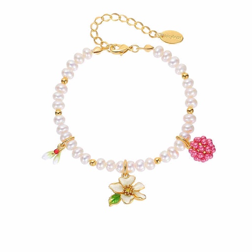 Flower And Raspberry Enamel Pearl Srand Bracelet