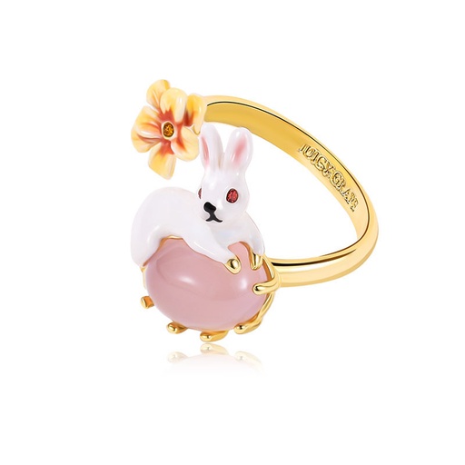 Cute Rabbit Bunny With Stone And Flower Enamel Adjustable Ring