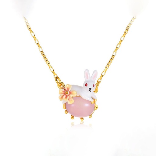 Cute Rabbit Bunny With Stone Flower Enamel Pendant Necklace
