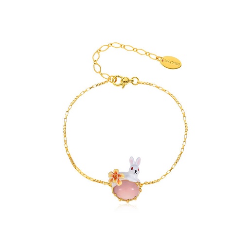 Cute Rabbit Bunny With Stone Flower Enamel Thin Bracelet