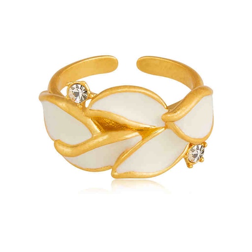 Leaf Shape And Zircon Elegant Enamel Adjustable Ring