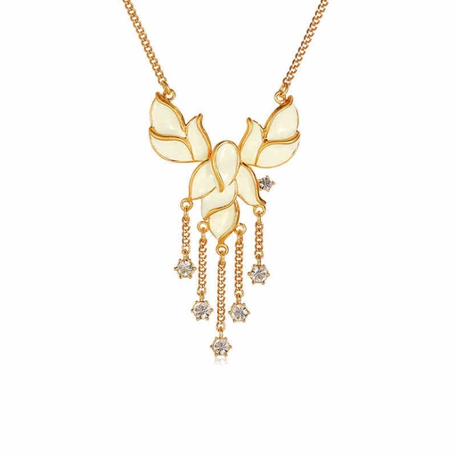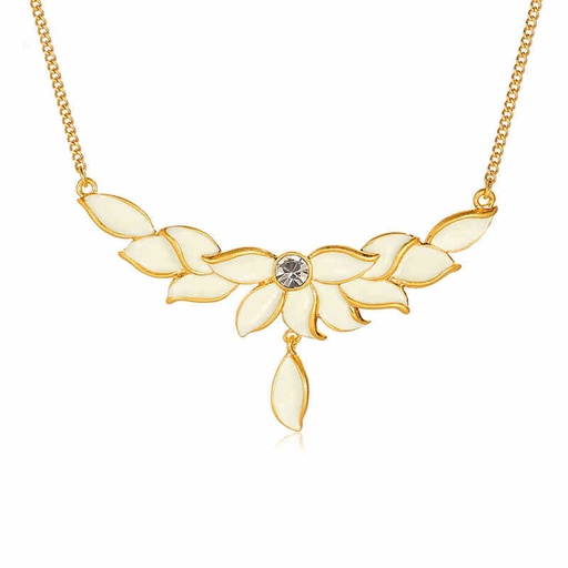 Leaf Shape Zircon Elegant Enamel Pendant Necklace