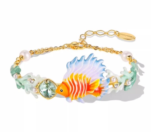 Fish Coral And Pearl Enamel Thin Chain Bracelet