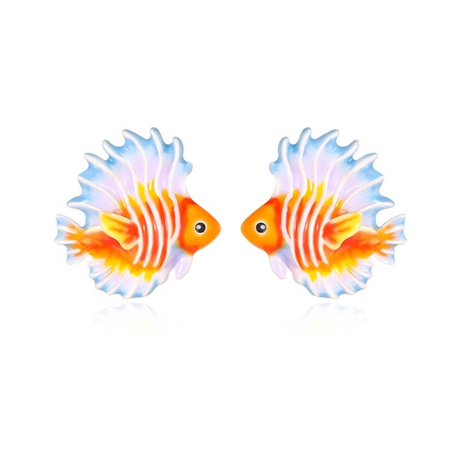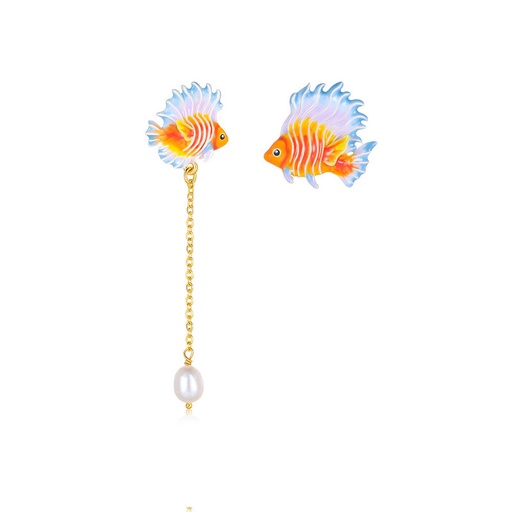 Tropical Fish And Pearl Enamel Asymmetrical Stud Earrings
