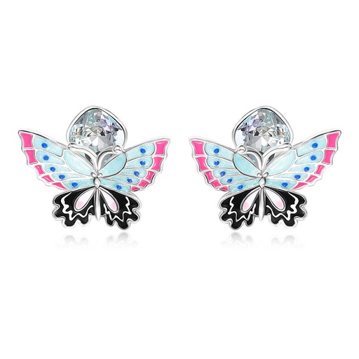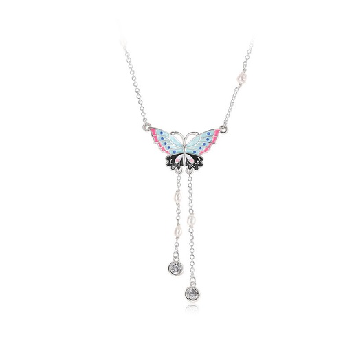 Butterfly And Zircon Enamel Pendant Tassel Necklace