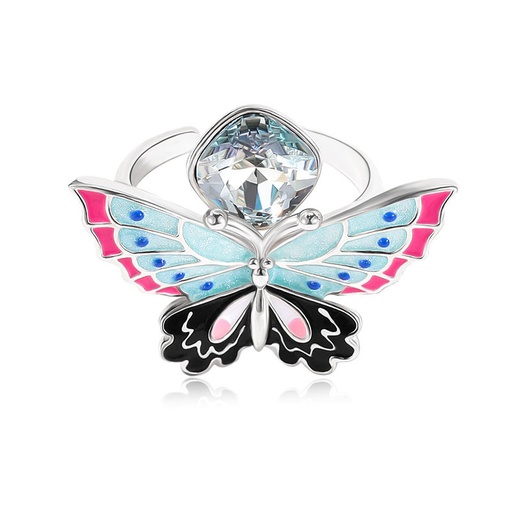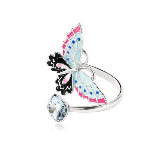 Cute Rabbit Bunny With Stone And Flower Enamel Adjustable Ring